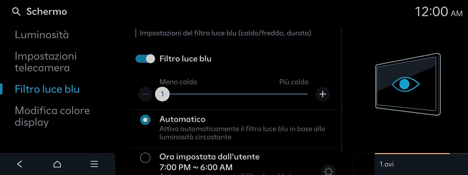Impostazioni del filtro luce blu (caldo/freddo, durata)