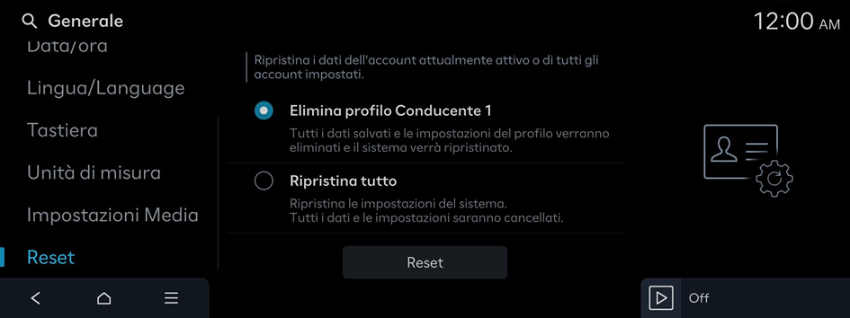 - È anche possibile ripristinare tutte le impostazioni per il profilo di login.