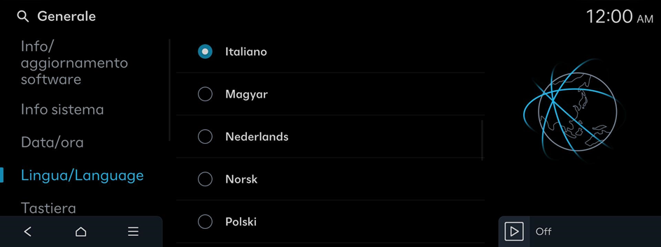- La modifica della lingua di sistema non influisce sulla visualizzazione di altri dati univoci come il nome del file musicale MP3.