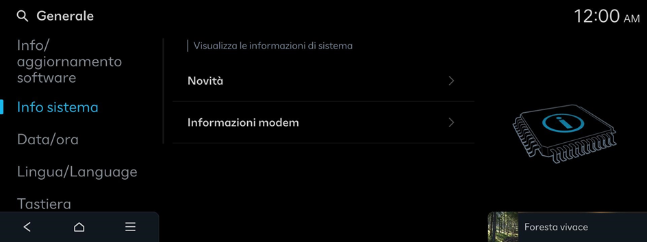 Mostra le informazioni del modem per l'utilizzo del servizio Bluelink.