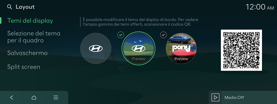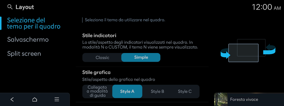 sullo schermo oppure premere il pulsante sul pannello di controllo, immettere un termine di ricerca, quindi selezionare l'elemento da eseguire.È possibile modificare il tema del display di bordo.