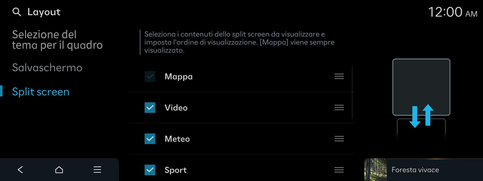 Seleziona i contenuti dello split screen da visualizzare e imposta l'ordine di visualizzazione. [Mappa] viene sempre visualizzato.