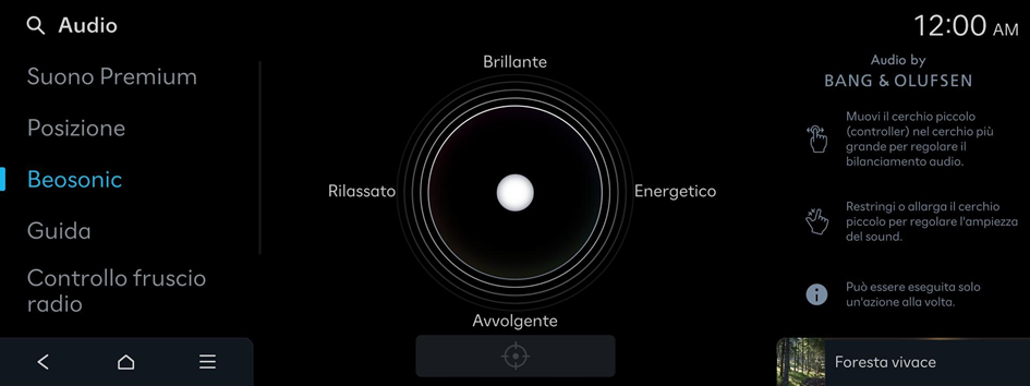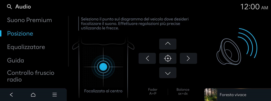 Seleziona il punto sul diagramma del veicolo dove desideri focalizzare il suono. Effettuare regolazioni più precise utilizzando le frecce.
