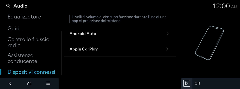 - Per inizializzare tutte le impostazioni audio del sistema per proiezione telefono, premere Predefinite.