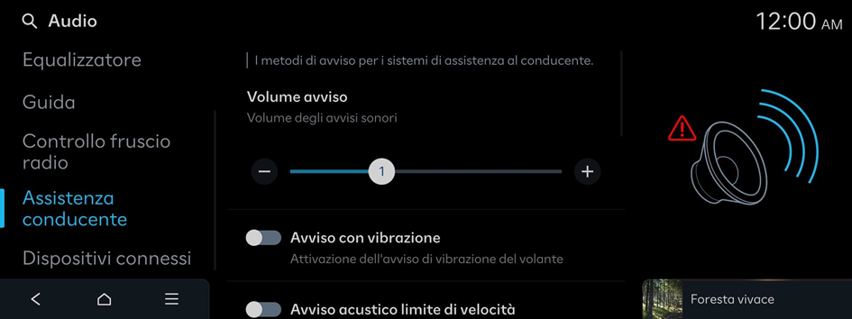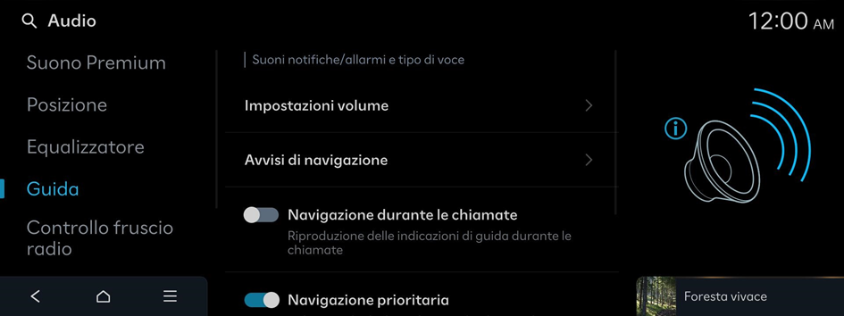 Abbassa tutti gli altri volumi all'emissione di un avviso acustico di sicurezza di guida.
