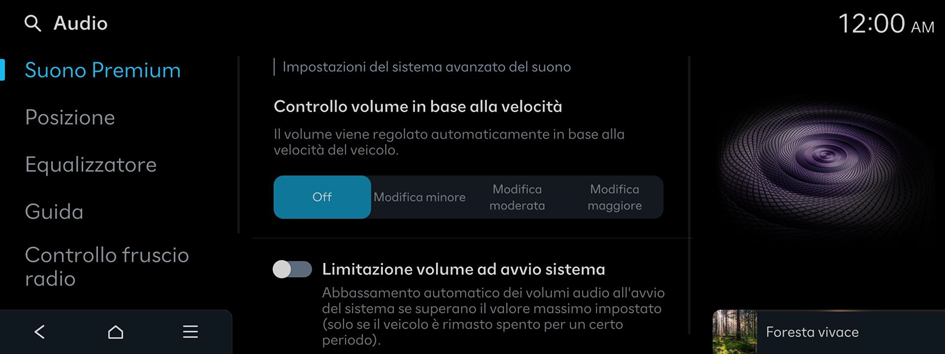Abbassamento automatico dei volumi audio all'avvio del sistema se superano il valore massimo impostato (solo se il veicolo è rimasto spento per un certo periodo).