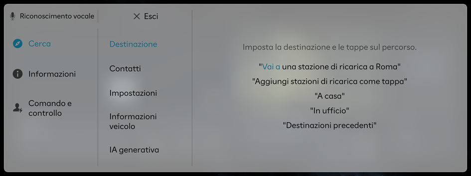 - • In modalità standby per il riconoscimento vocale, pronunciare "Esci".