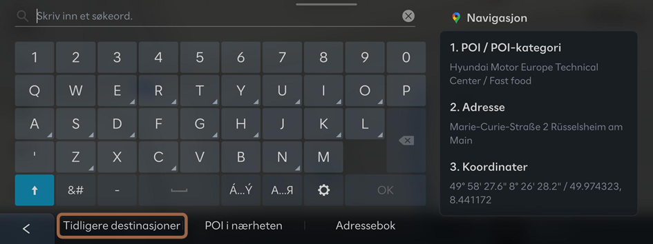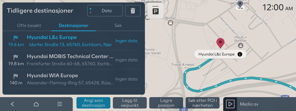 Du kan angi en destinasjon eller et veipunkt ved å velge fra de siste søkeresultatene.