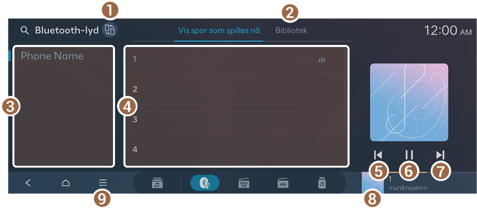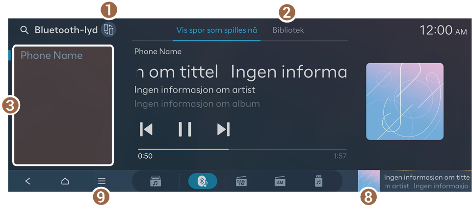 - Kontrollene eller skjermbildene kan variere avhengig av den tilkoblede Bluetooth-enheten, telefonmodellen og musikkspillerappen.