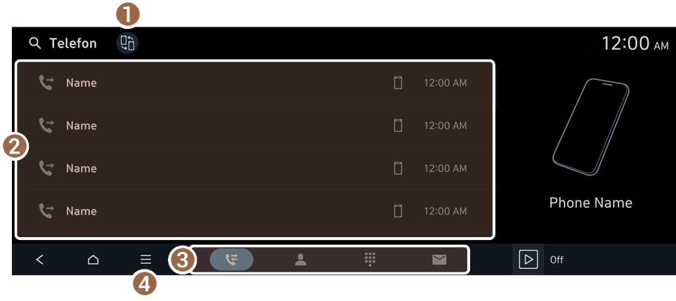- • Last ned: Last ned listen over nylige anrop fra den tilkoblede mobilenheten.