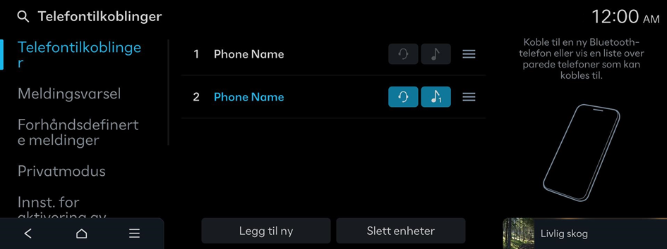 - På startskjermen trykker du på Innstillinger ▶ Telefon-tilkoblinger ▶ Telefontilkoblinger ▶ Legg til ny.