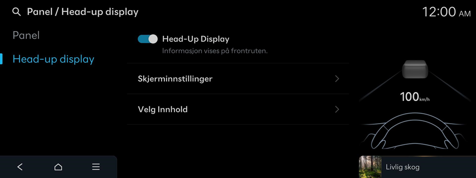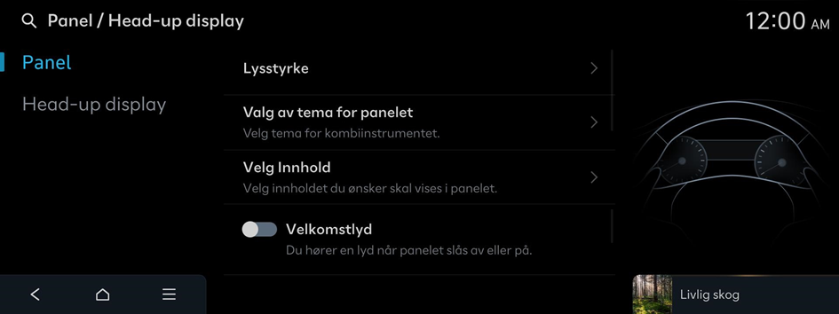 - På startskjermen trykker du på Innstillinger ▶ Panel / Head-up display.