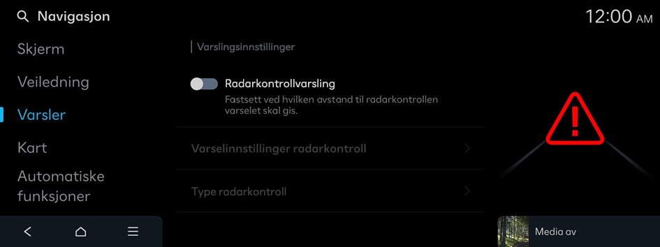 Varselinnstillinger radarkontroll