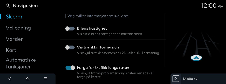 - På startskjermen trykker du på Innstillinger ▶ Navigasjon.