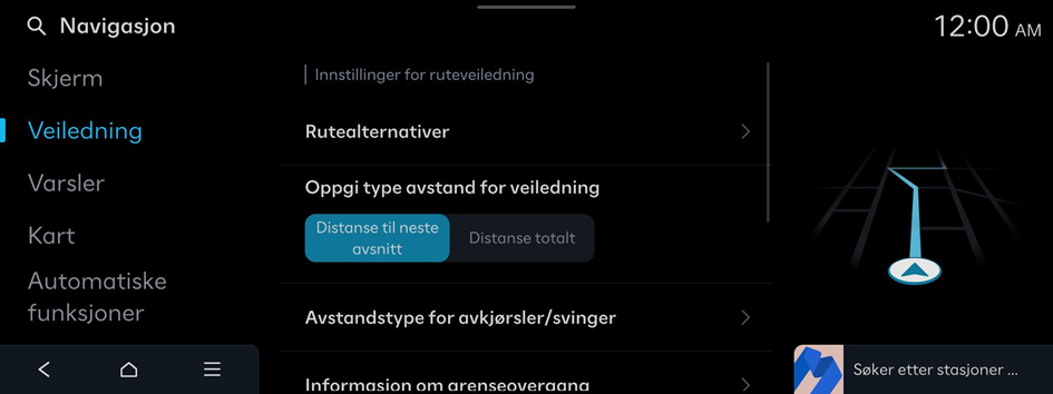 Skjermbildet for navigasjonsinnstillinger vises.