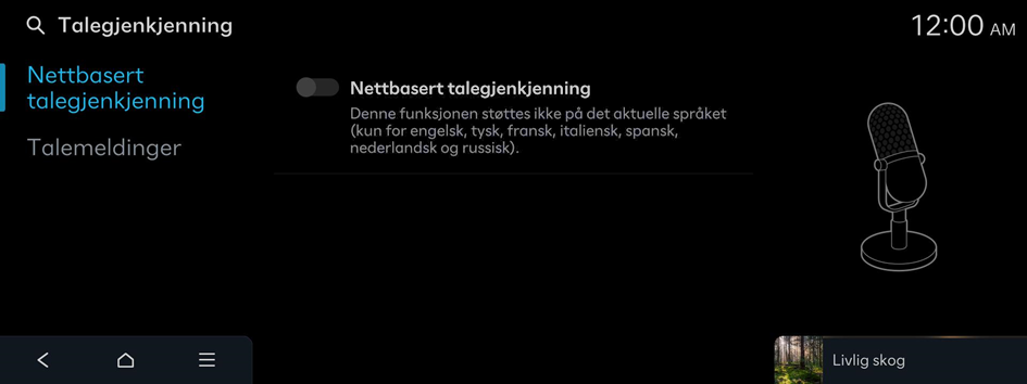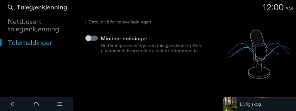 Innstillingsskjermen for stemmegjenkjenning vises.