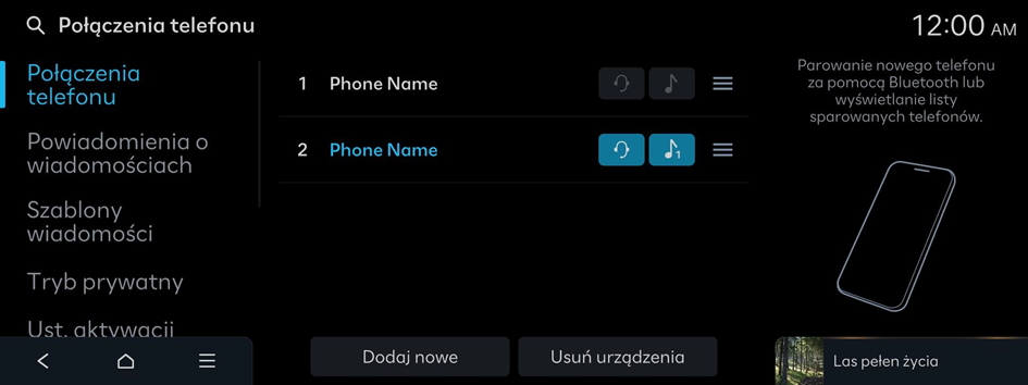 - Na ekranie głównym nacisnąć kolejno Ustawienia ▶ Połączenia telefonu ▶ Połączenia telefonu ▶ Dodaj nowe.