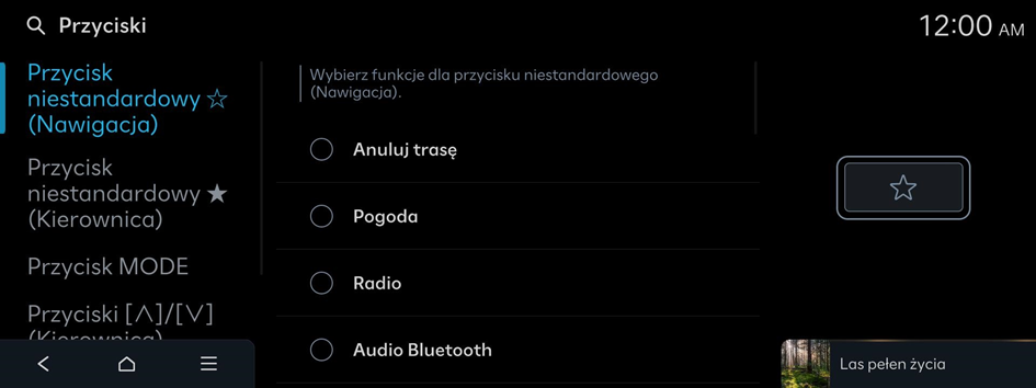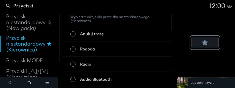 Wybierz funkcje dla przycisku niestandardowego (Kierownica).
