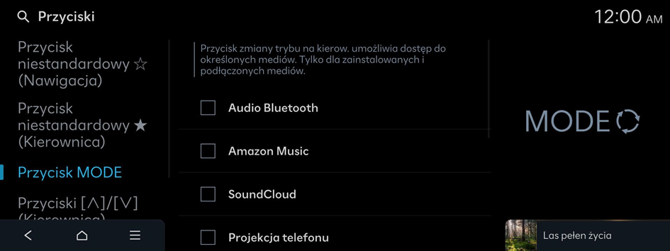 Przycisk zmiany trybu na kierow. umożliwia dostęp do określonych mediów. Tylko dla zainstalowanych i podłączonych mediów.
