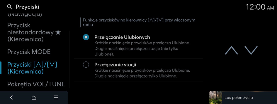 Funkcje przycisków na kierownicy [∧]/[∨] przy włączonym radiu