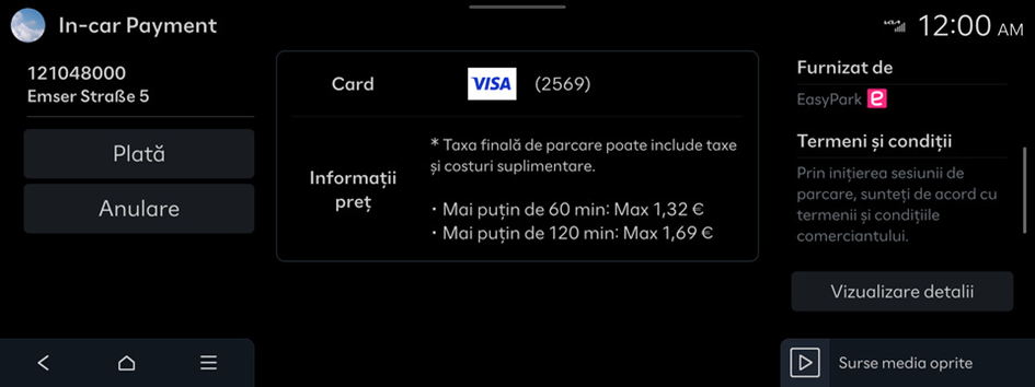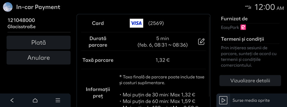 - In-car Payment poate fi utilizat numai în locațiile afiliate.