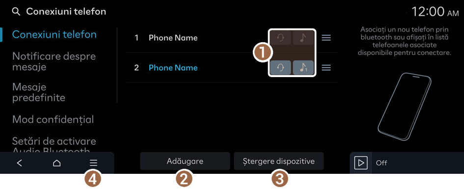 - Pe ecranul principal, apăsați Setări ▶ Conexiuni telefon ▶ Conexiuni telefon ▶ Ștergere dispozitive.