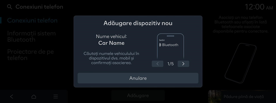 - Numele dispozitivului Bluetooth al sistemului poate fi găsit în fereastra Adăugare dispozitiv nou afișată.