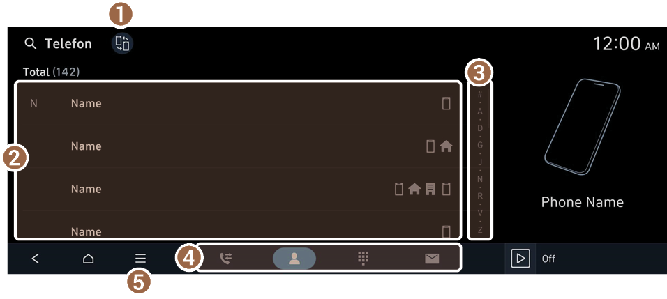 - Dacă este conectat un alt telefon mobil, ecranul nu afișează contactele descărcare din telefonul anterior, dar acestea vor fi salvate în sistem până când telefonul va fi șters din listă.