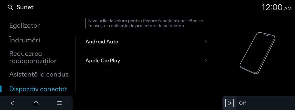 - Proiecția telefonului este conectată la setările efectelor de sunet Bluetooth.