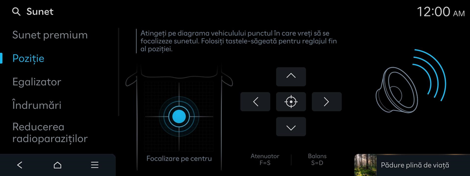 Atingeți pe diagrama vehiculului punctul în care vreți să se focalizeze sunetul. Folosiți tastele-săgeată pentru reglajul fin al poziției.