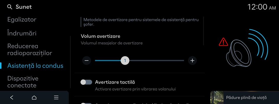 Activarea avertizării acustice privind siguranța pe bandă. Avertizarea acustică nu poate fi dezactivată dacă avertizarea tactilă este oprită.
