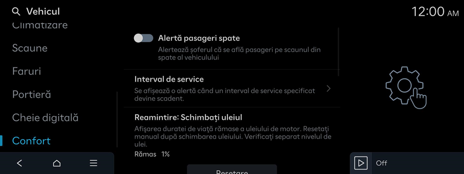 - Setările vehiculului se pot modifica doar când vehiculul este pornit.