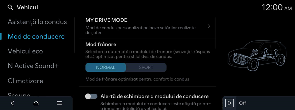 Schimbarea modului de conducere este afişată printr-o imagine detaliată a vehiculului.