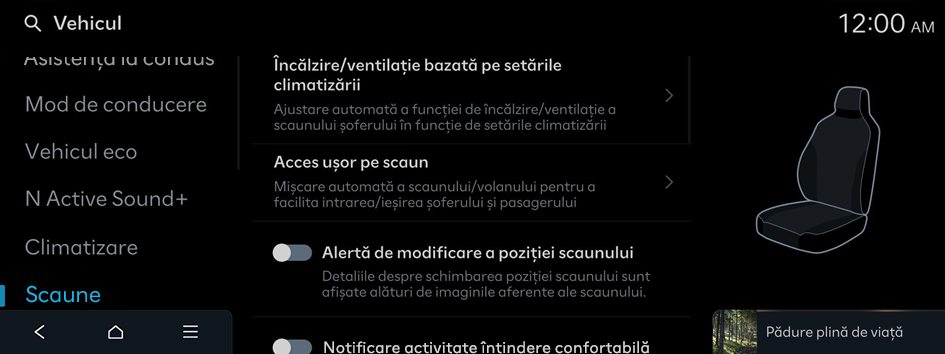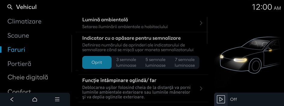 - Setările disponibile pot varia în funcție de modelul și specificațiile vehiculului.