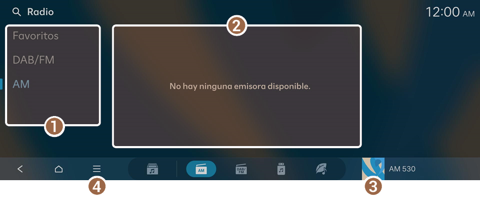 . - • Puede guardar todas las emisoras, accesibles desde la pantalla AM, en la lista de favoritos. En la pantalla de AM, pulse