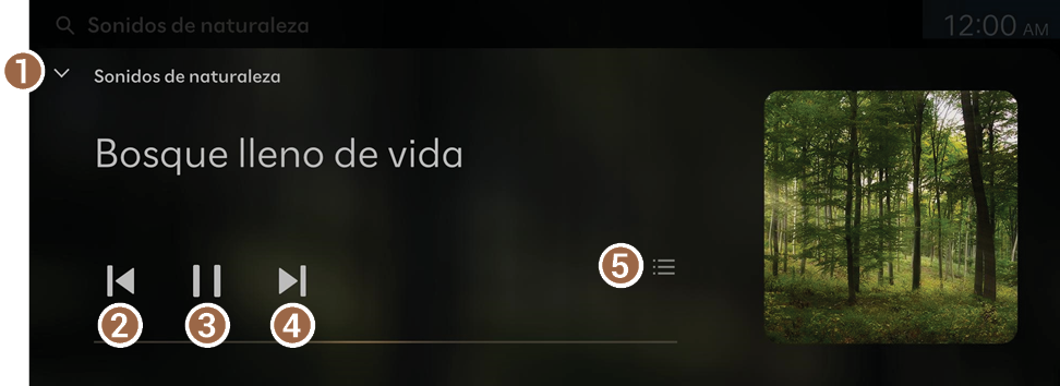 Cambie el modo de medios. Busque los sonidos de la naturaleza que desee escuchar y reprodúzcalos.