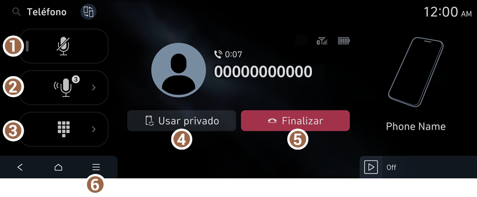 - Durante una llamada de teléfono a través de Bluetooth, no es posible cambiar a otra pantalla, como la de modos de medios.