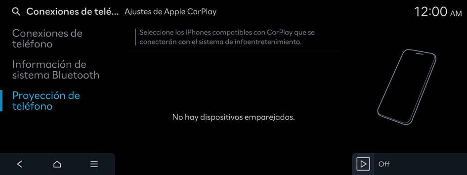 - Cuando el iPhone se conecta correctamente, Proyección de teléfono cambia a Apple CarPlay en la pantalla de inicio. Si no aparece Apple CarPlay, pruebe a realizar la conexión nuevamente.