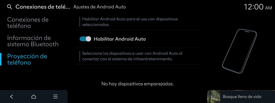 - Cuando el smartphone se conecta correctamente, Proyección de teléfono cambia a Android Auto en la pantalla de inicio. Si no aparece Android Auto, pruebe a realizar la conexión nuevamente.