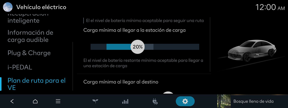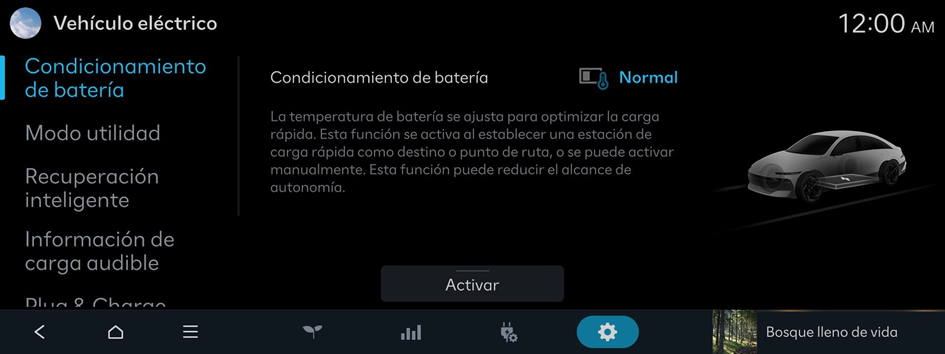 Aparece la pantalla de ajustes del vehículo eléctrico.