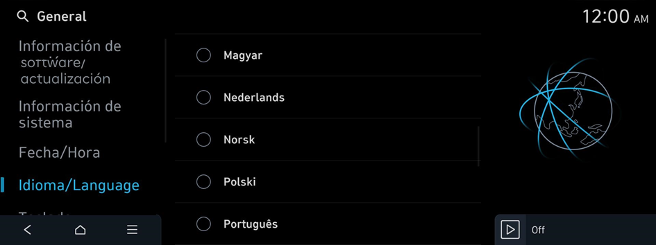 - El cambio de idioma del sistema no afectará a la visualización de otros datos únicos, como el nombre de los archivos de música MP3.