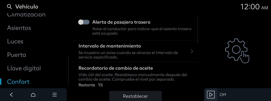 - Para inicializar todos los ajustes del recordatorio de intervalo de servicio, pulse Restablecer.