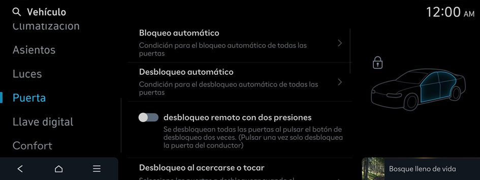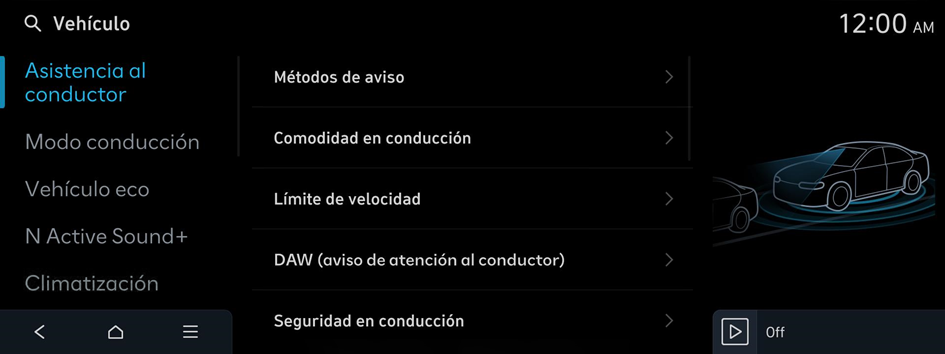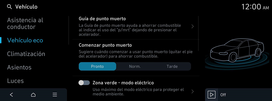 - Los ajustes disponibles pueden variar en función del modelo y las especificaciones del vehículo. Consulte el manual del propietario del coche para obtener más información sobre las funciones.
