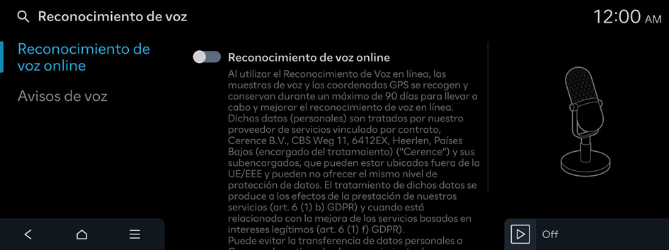 Aparece la pantalla de ajustes de reconocimiento de voz.