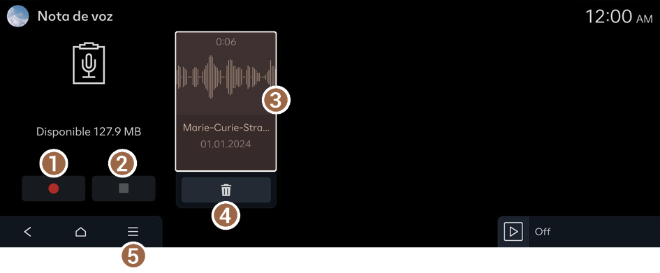 - Muestra la lista de notas de voz grabadas.