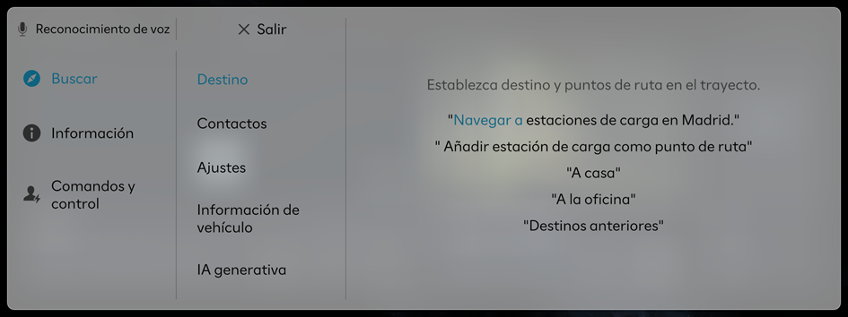 Con la función de reconocimiento de voz, puede acceder fácilmente a varias funciones del sistema de información y entretenimiento sin tener que usar la pantalla o los botones. Esta función evita distracciones del conductor y situaciones de riesgo.