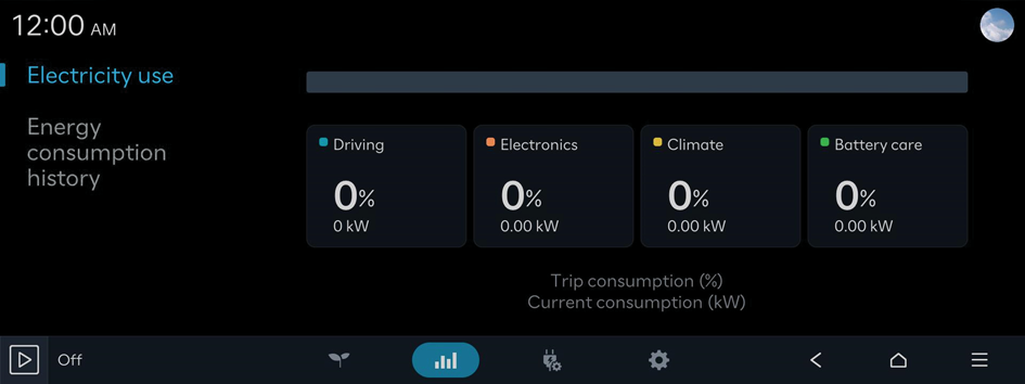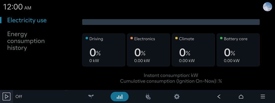 You can view the power consumed by the drivetrain, climate control, electrical systems and battery care function.