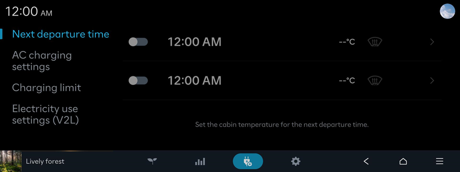 You can configure various functions such as automatic battery charging or climate control according to the specified departure time.