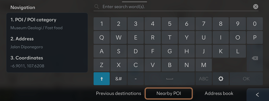 You can set a destination by searching for nearby points of interest by category.