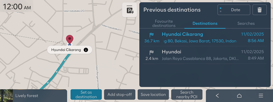 - Check the location of the destination on the Map screen, press Set as destination.
